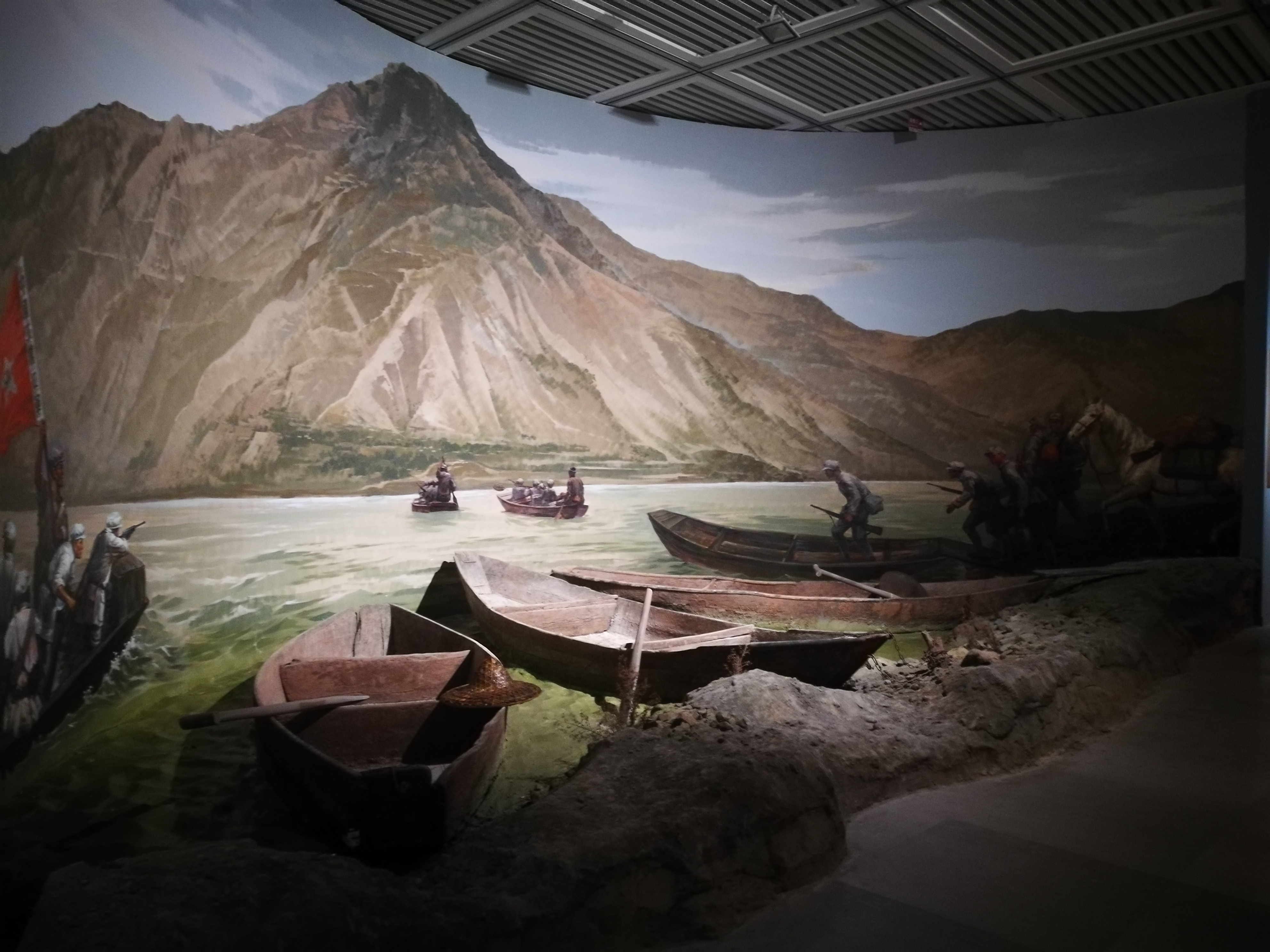 搶渡金沙江——紅軍在準(zhǔn)備渡江之際,蔣介石令龍?jiān)茖⒏鞫煽诘亩纱?、木板等渡江器具材料悉?shù)鑿沉燒毀……后來,在皎平渡37名船工的幫助下,紅軍主力軍渡過了金沙江。
