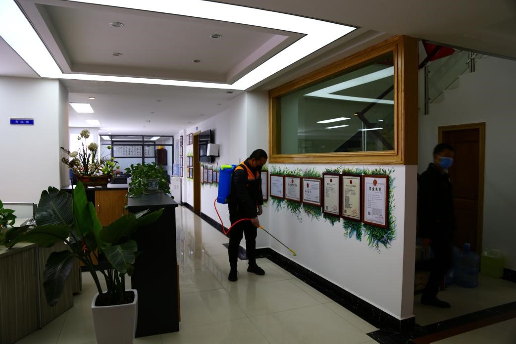 每天早晚各一次對辦公區(qū)域進(jìn)行消毒