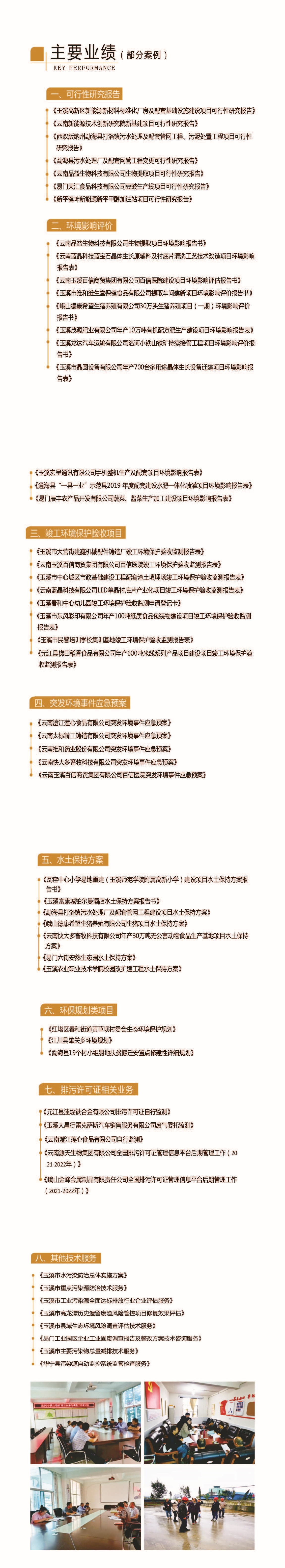 公司可承接農(nóng)村環(huán)境綜合治理、環(huán)境規(guī)劃、環(huán)境工程設(shè)計(jì)、環(huán)境影響評價(jià)、突發(fā)環(huán)境事件應(yīng)急預(yù)案、水土保持報(bào)告等方案的編制;排污許可證填報(bào)及管理;污染減排技術(shù)服務(wù)、環(huán)保管家等各項(xiàng)業(yè)務(wù)。項(xiàng)目覆蓋范圍廣,公司成立至今已承接過數(shù)百項(xiàng)環(huán)保技術(shù)咨詢服務(wù)項(xiàng)目,咨詢經(jīng)驗(yàn)豐富,環(huán)保技術(shù)人才團(tuán)隊(duì)實(shí)力強(qiáng)大。